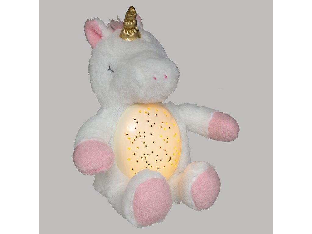 Je heboučký na mazlení a na zdi promítá barevné hvězdičky a vytvoří tak pohádkovou atmosféru, ve které se bude dětem krásně usínat.